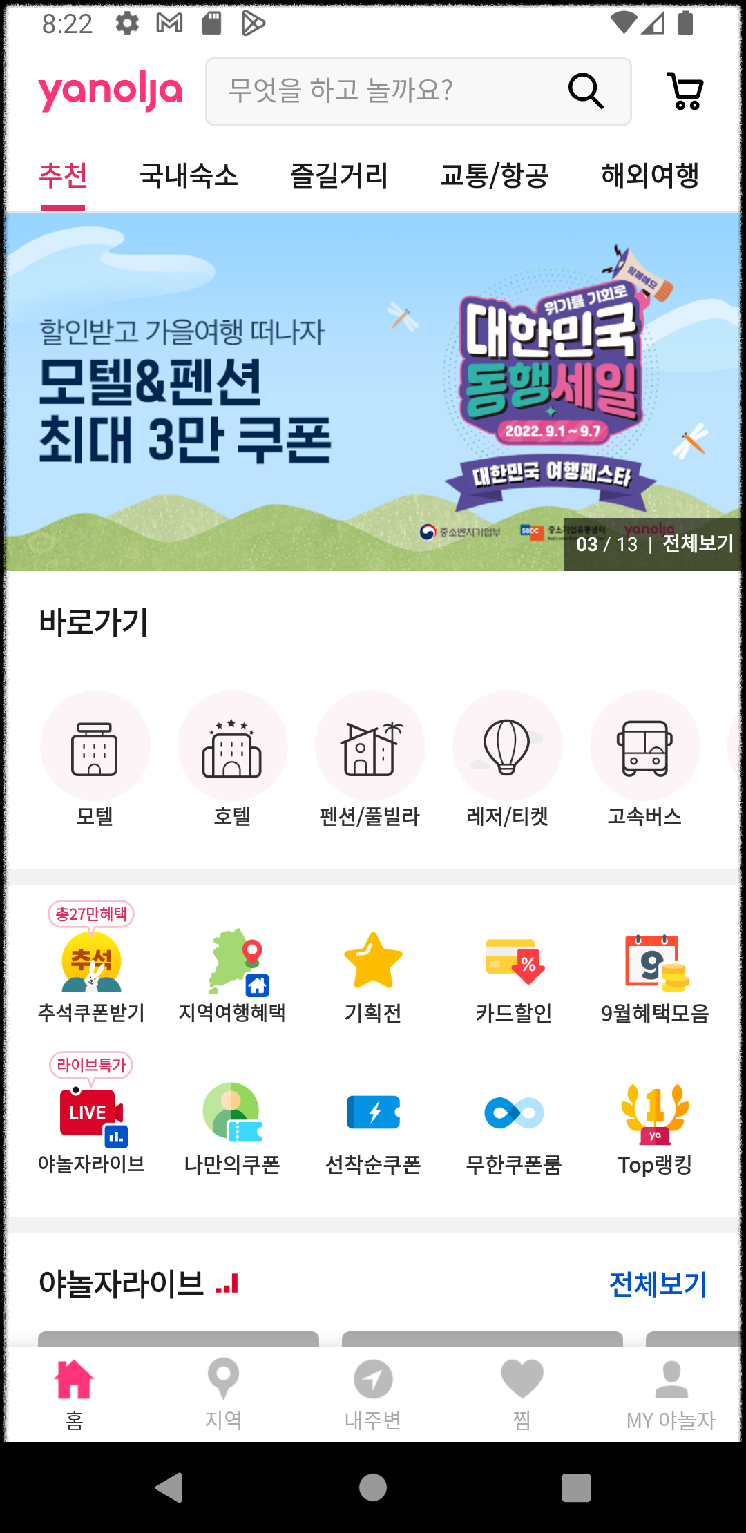 하단 또는 측면의 내비게이션 바(Navigation Bar) 영역