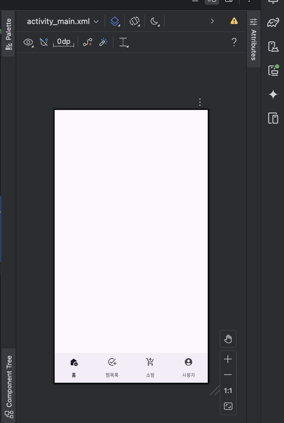 이제 EdgeToEdge UI 를 사용해보겠습니다. 패딩을 적용하기 위한 Insets 는 아직 적용하지 않겠습니다.