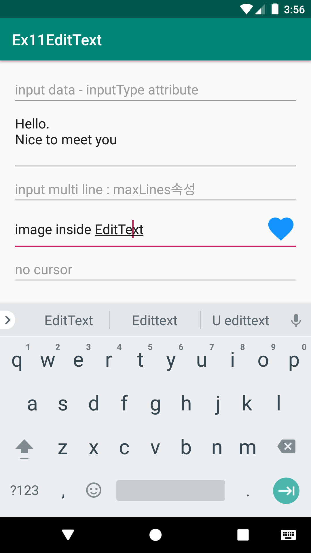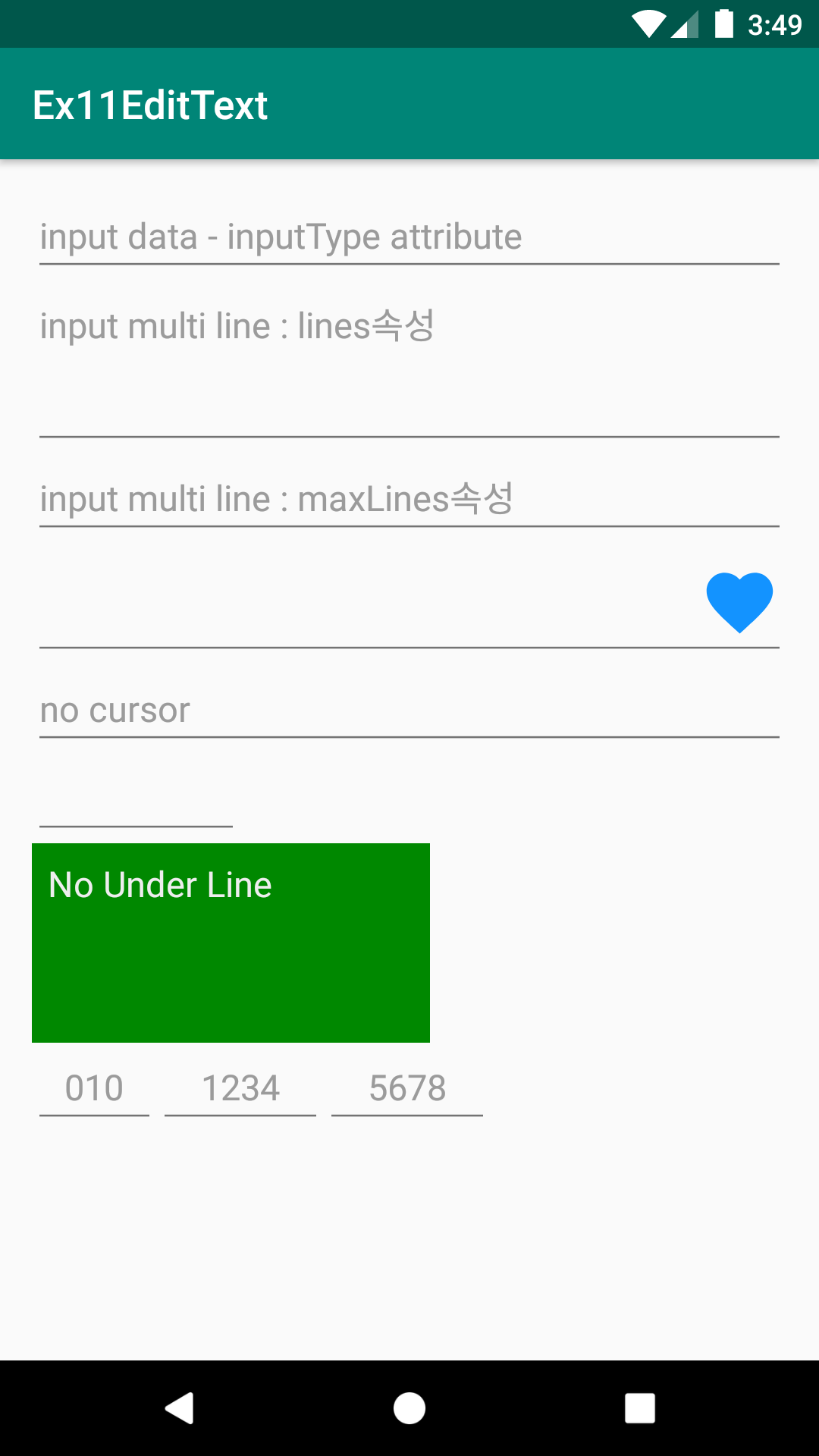 EditText의 기타 속성들에 따른 실행모습