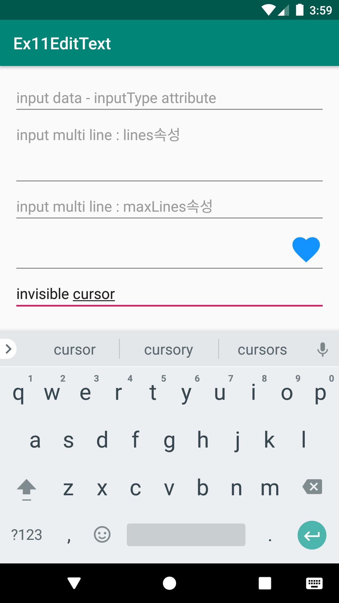 <!--EditText 커서 안보이기-->