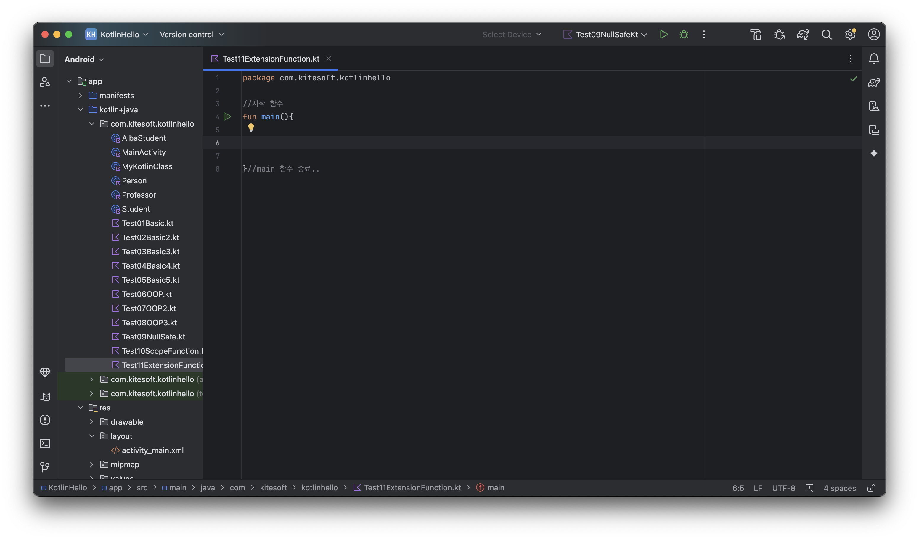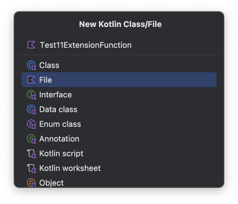 실습을 위해 새로운 Test11ExtensionFunction.kt 코틀린 파일을 만들겠습니다.