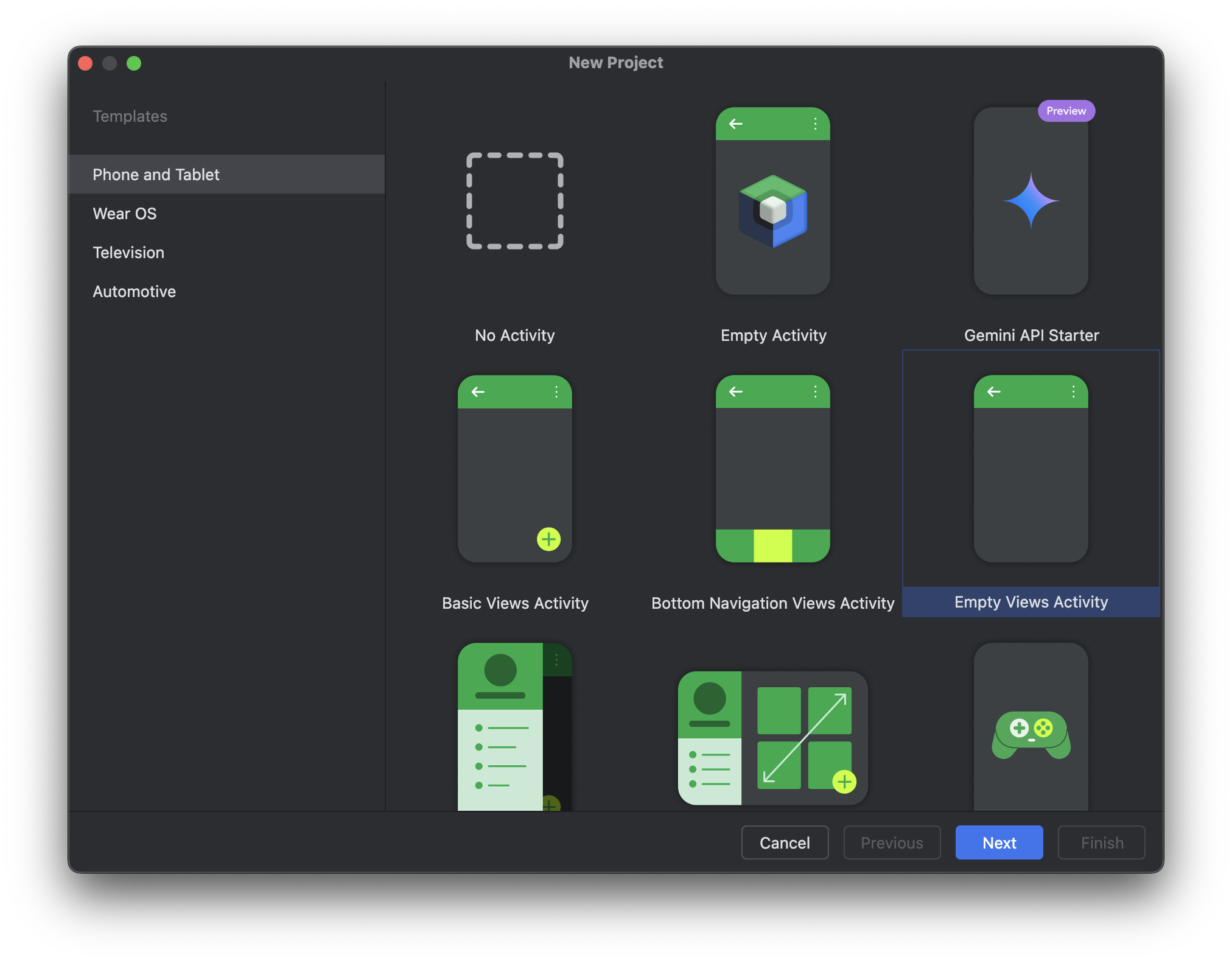 Project Template : Empty Views Activity