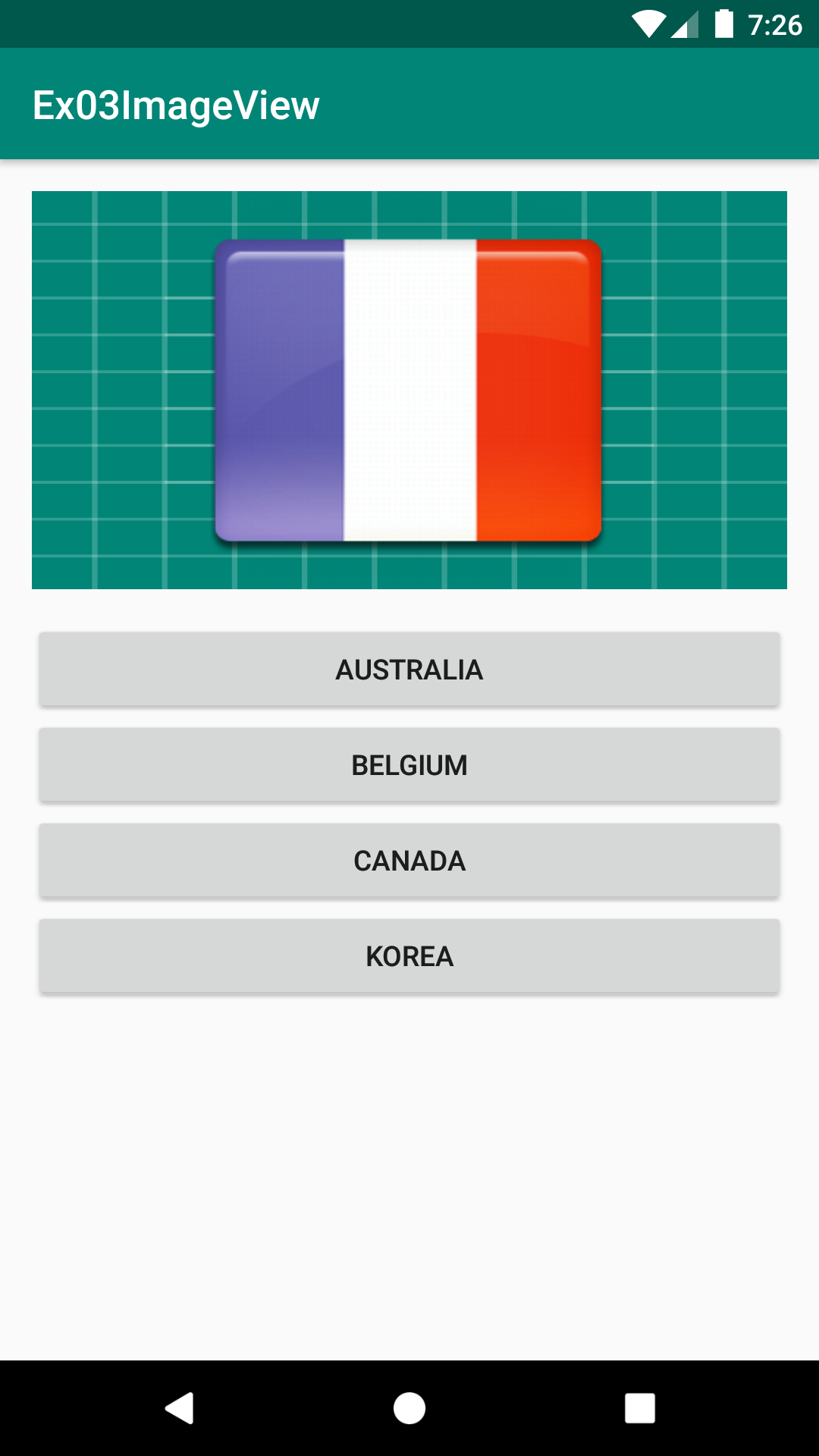 - 각각의 버튼을 클릭하였을 때 ImageView가 보여주는 그림을 변경하기
