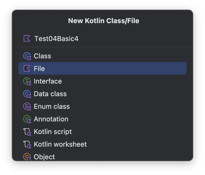 새로운 코틀린 파일 Test04Basic4.kt 를 만들고 문법을 알아보겠습니다.