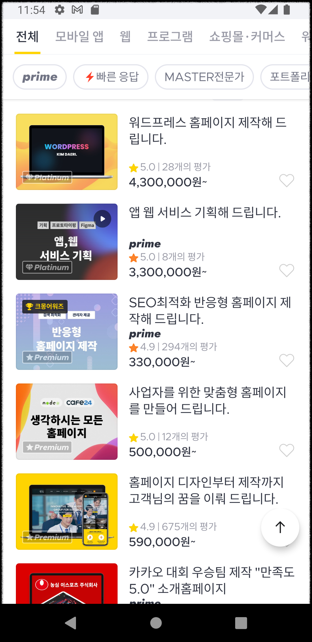 리사이클러뷰를 사용하여 대량의 데이터를 보여주는 앱들의 UI [ 크몽, 여기어때, 오늘의 집 ]