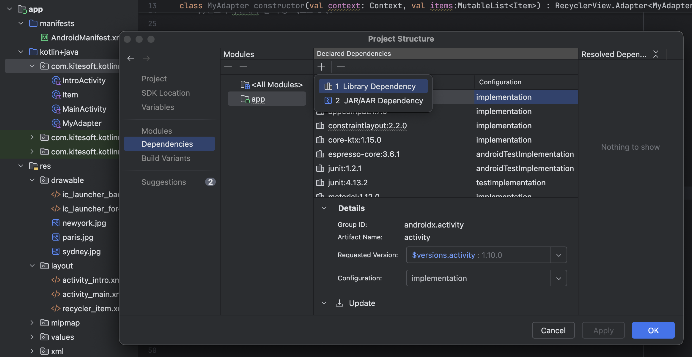 items.add( Item("NEW YORK","Hello. Kotlin", R.drawable.newyork) )