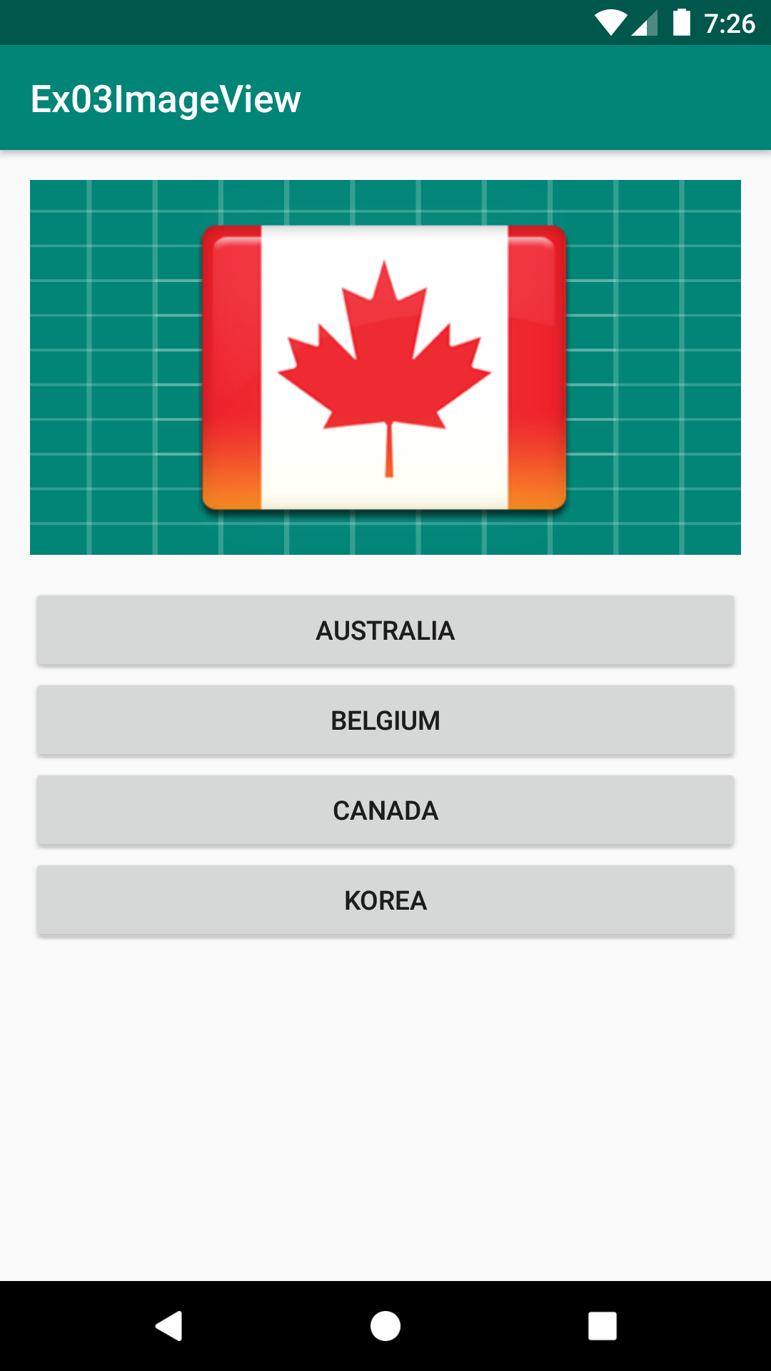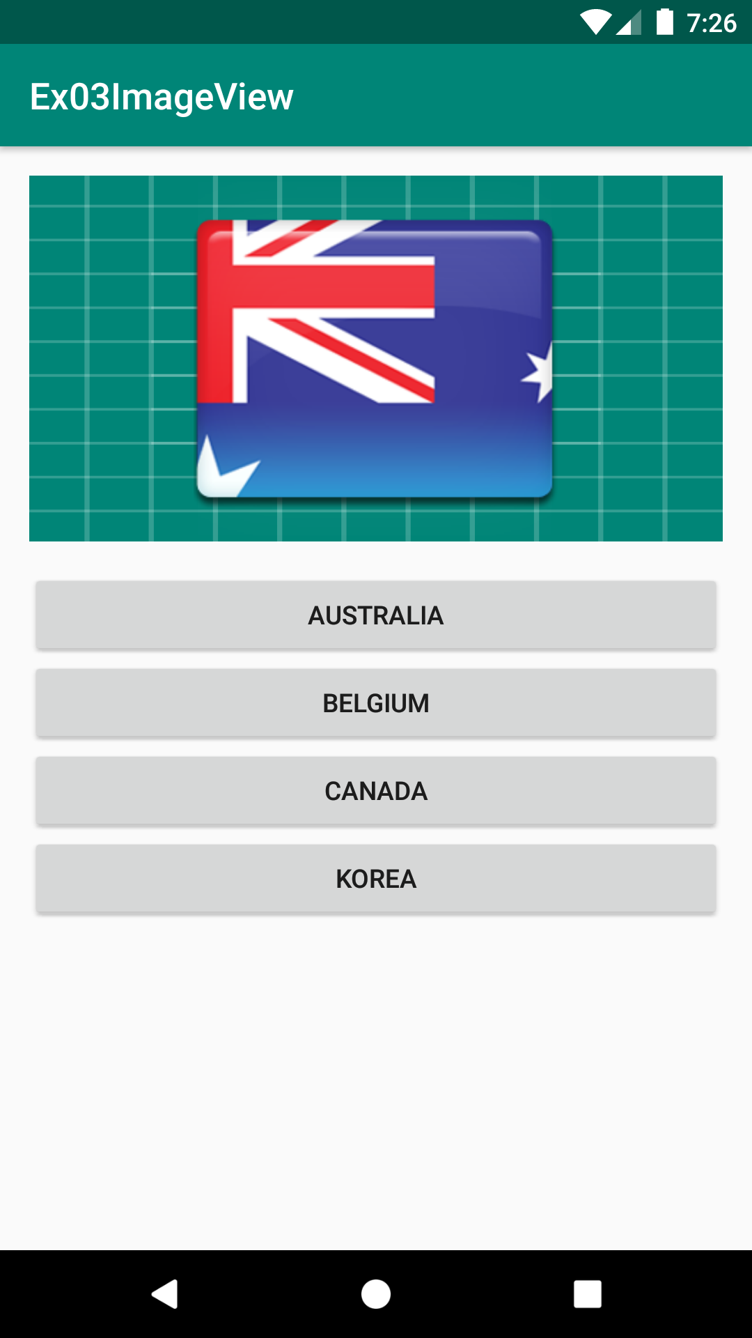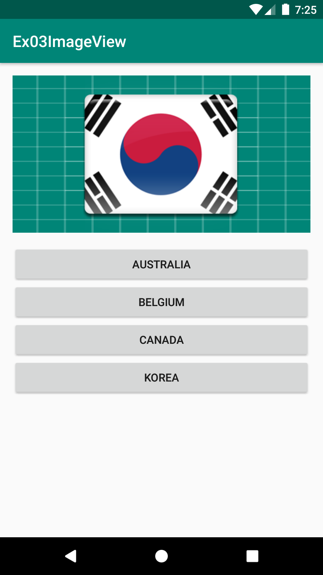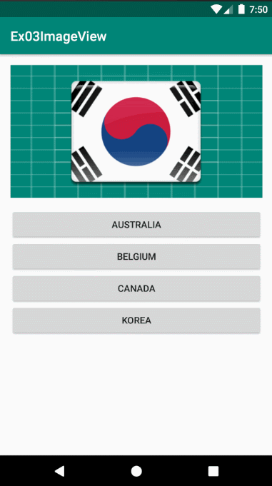 - 각각의 버튼을 클릭하였을 때 ImageView가 보여주는 그림을 변경하기